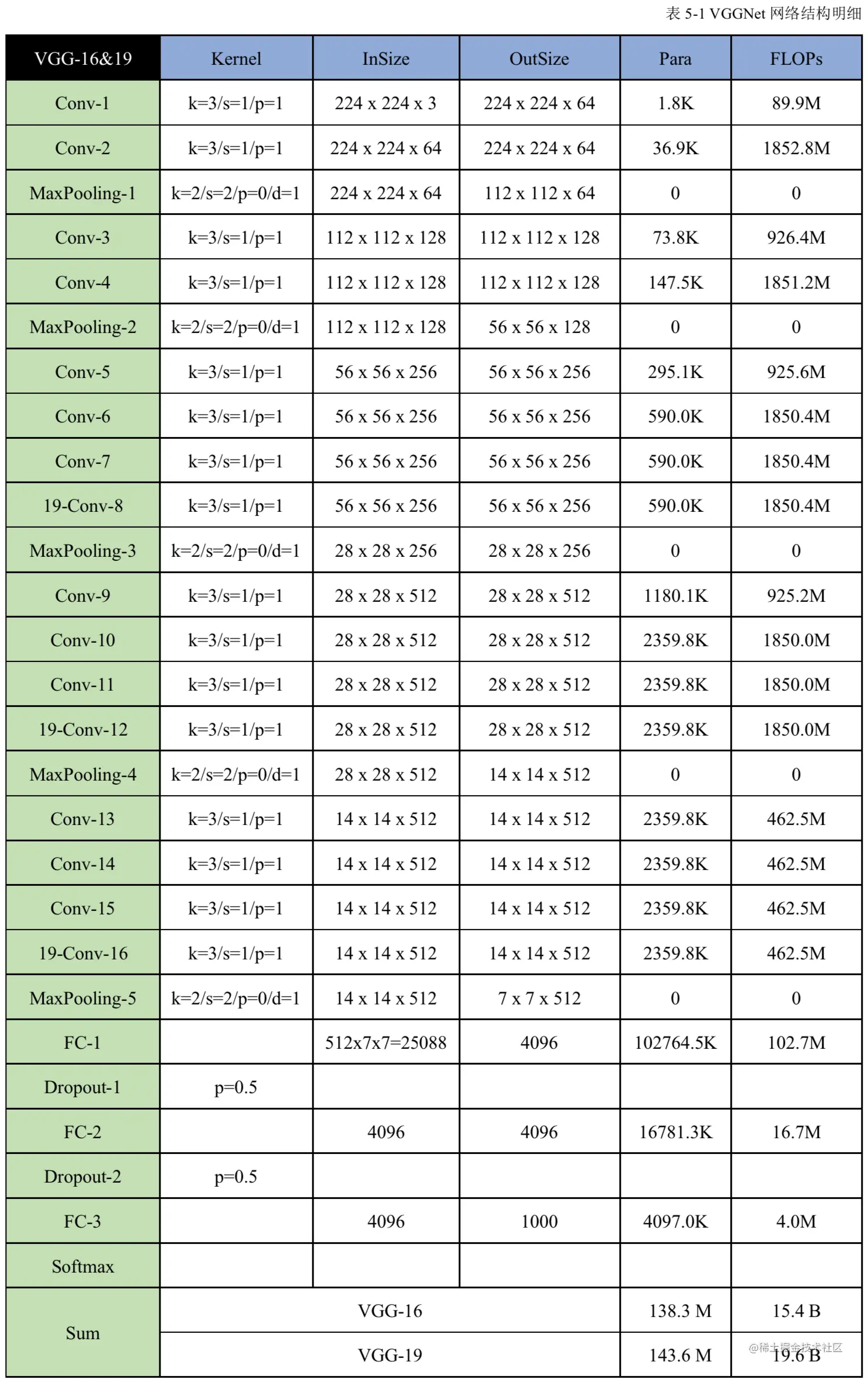 3.5.3-VGGNet网络结构明细