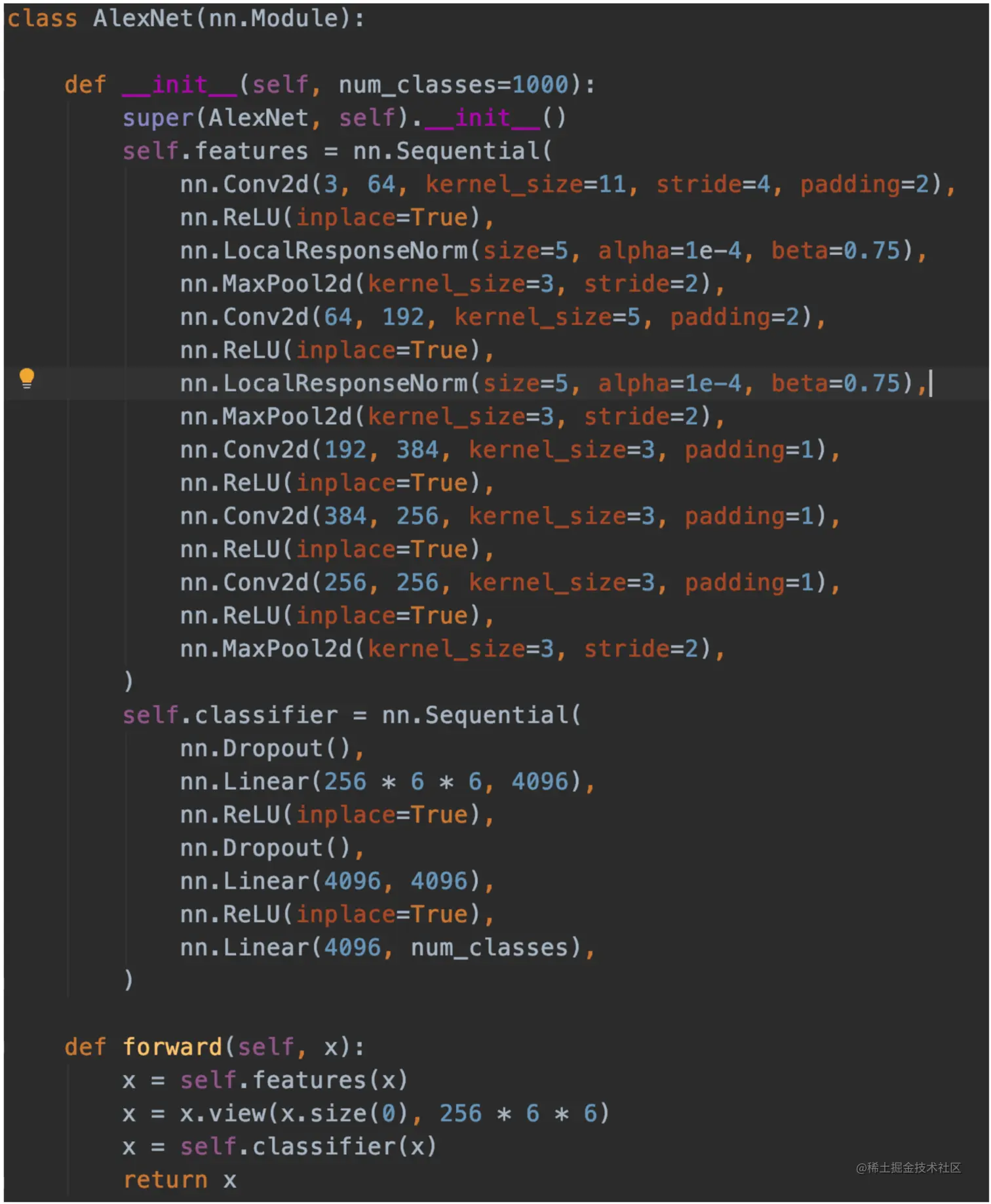 图7-4为原始论文中定义的网络结构,过于简单,所以我参考了Pytorch下的源码实现,给出了具体的网络结构明细,表7-1所示。