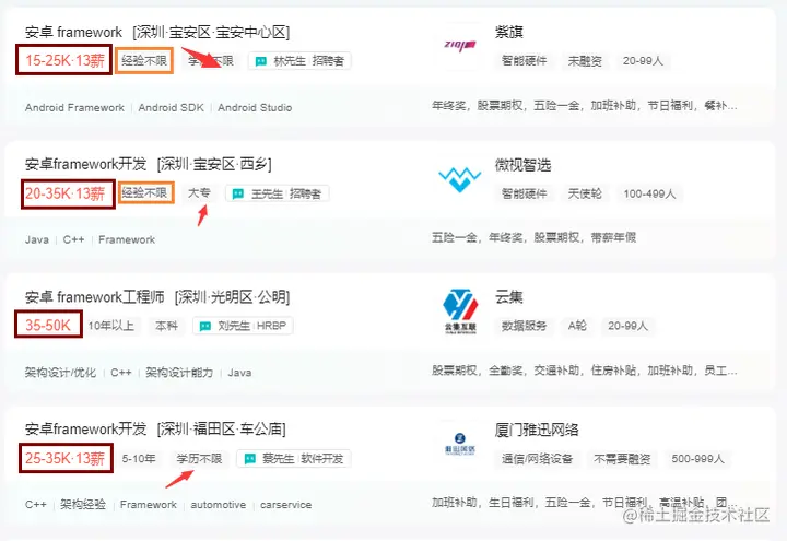 Framework岗位主要负责Android平台的架构设计、开发和维护工作,包括Android应用框架层、SDK、系统级服务和底层驱动等。随着移动互联网的快速发展,Android成为了世界上最大的移动互联网操作系统之一,因此Framework岗位在移动互联网领域的需求量也非常大。