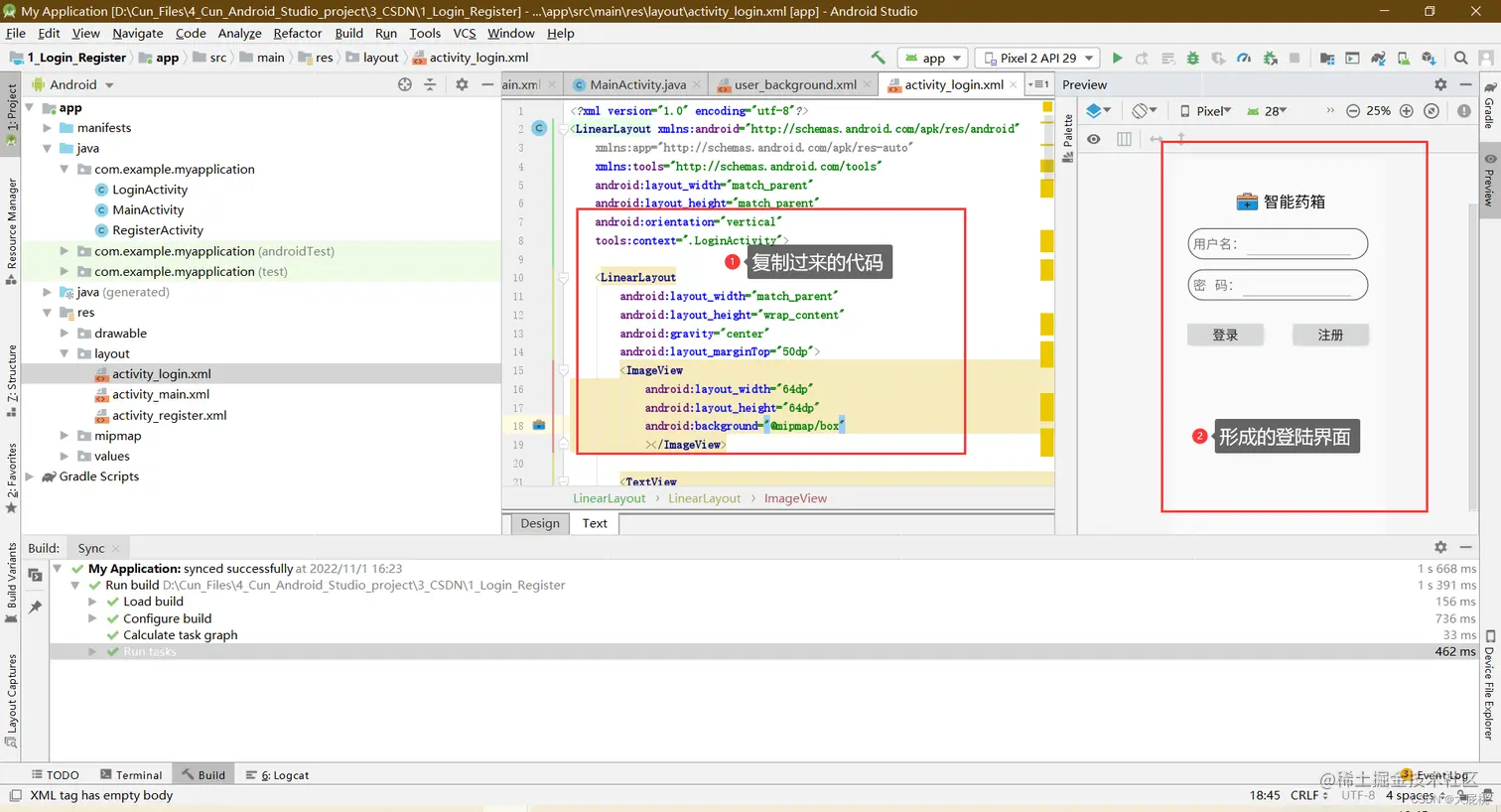 第一步、登录界面的布局编写方式也和上面一样,复制下方代码