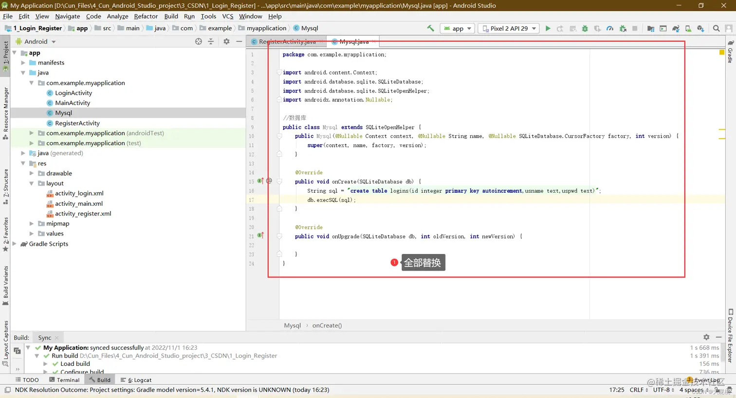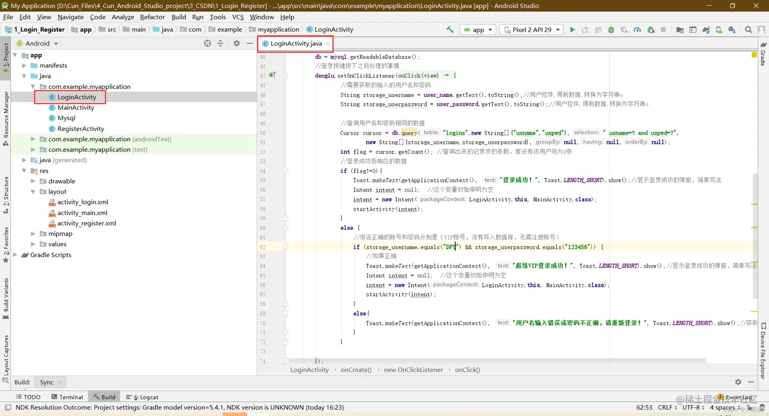 第三步、编辑LoginActivity.java文件内部的代码,替换为以下代码