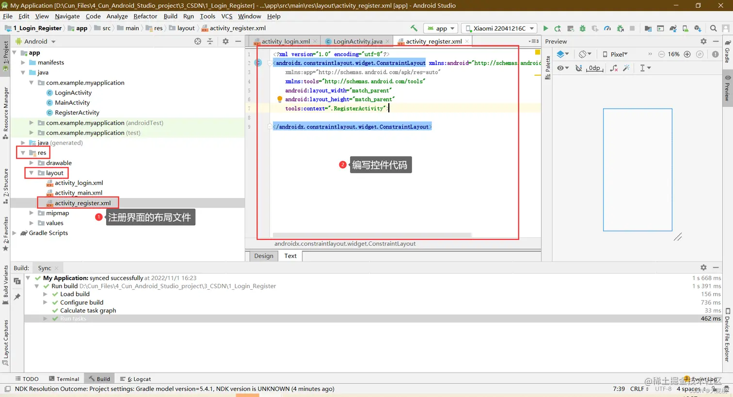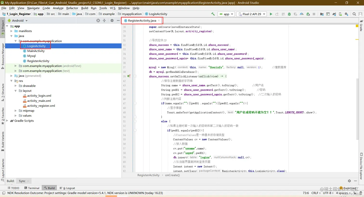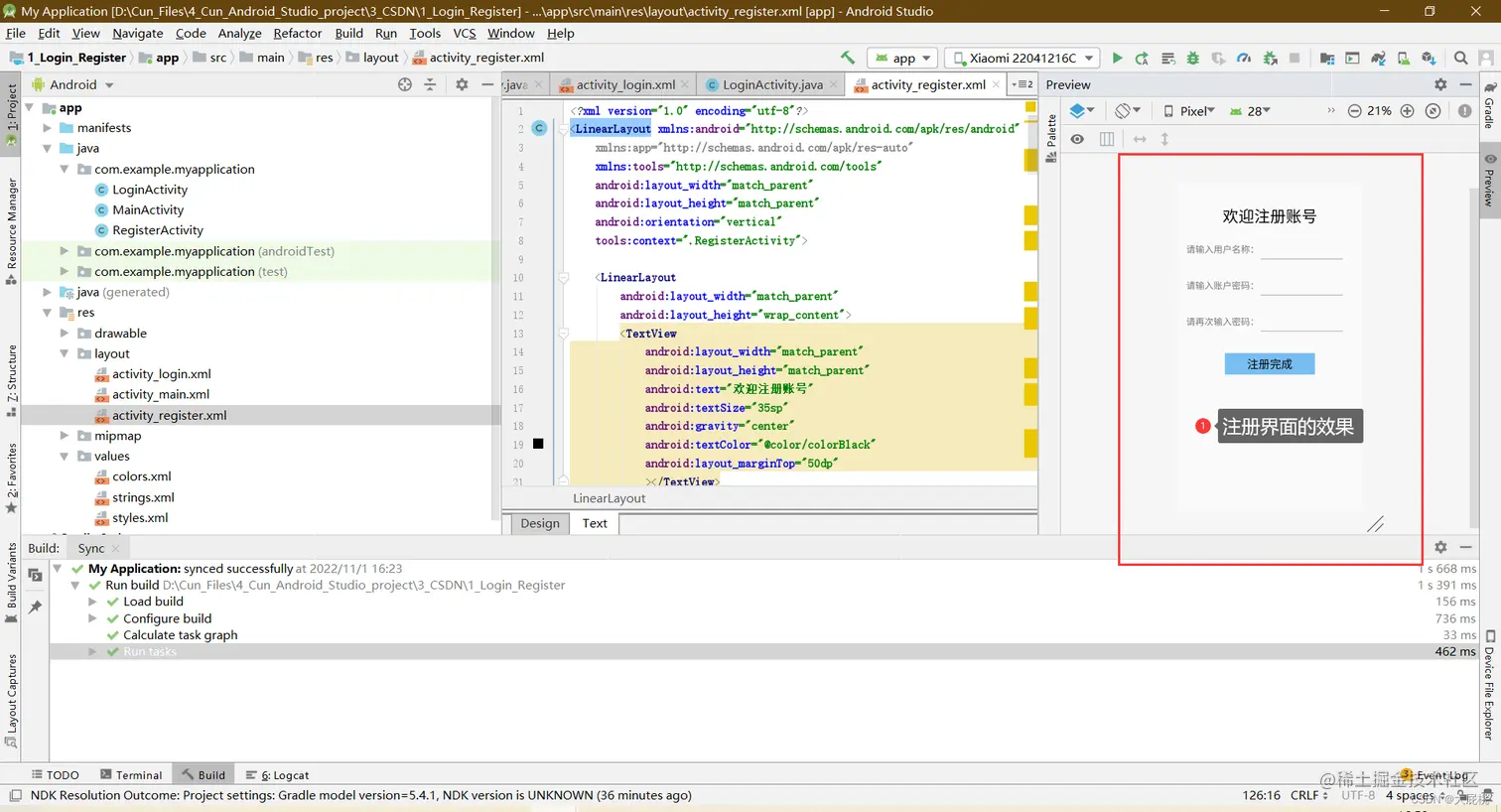 RegisterActivity.java文件替换后的界面
