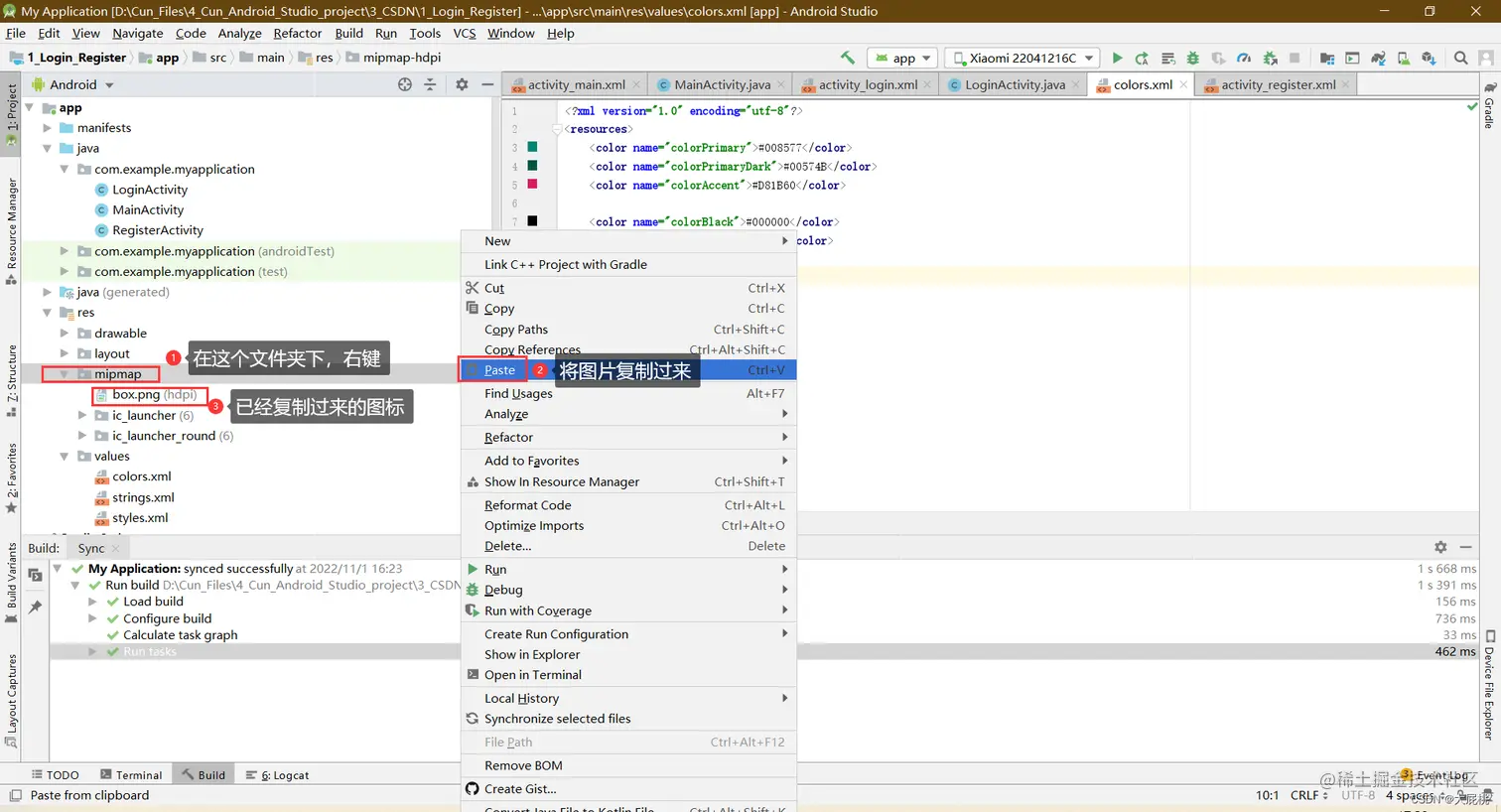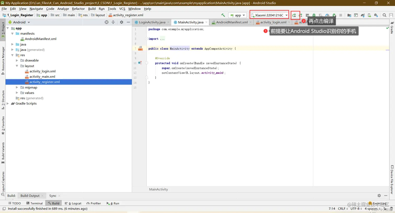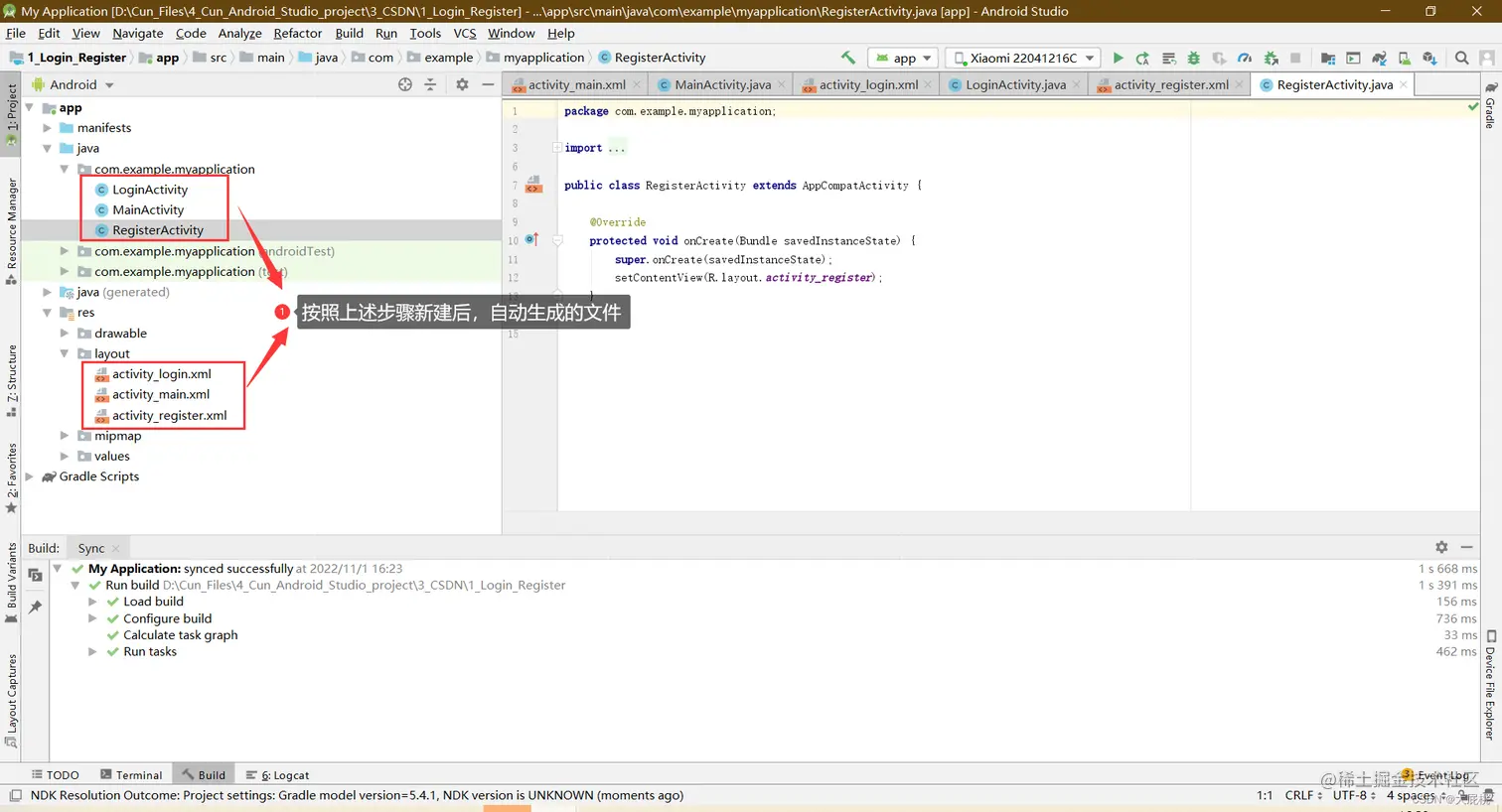 RegisterActivity.java文件替换后的界面