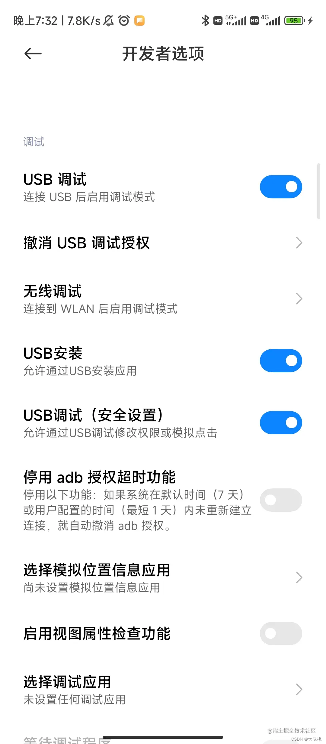 第一步、小米手机打开开发者模式,允许USB调试,允许USB安装。