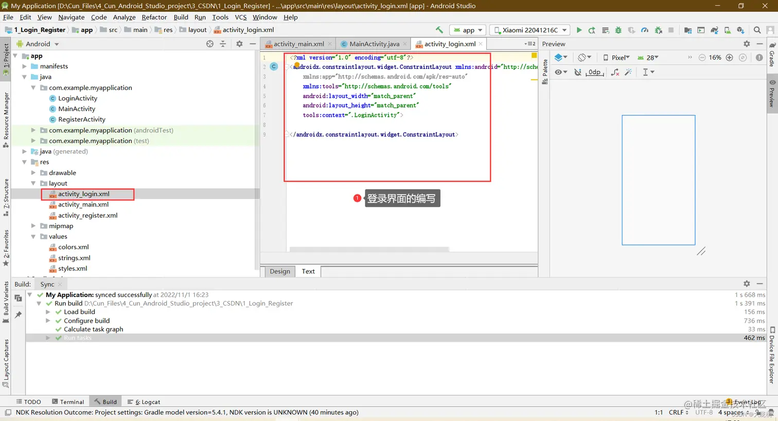 第二步、登录界面布局代码