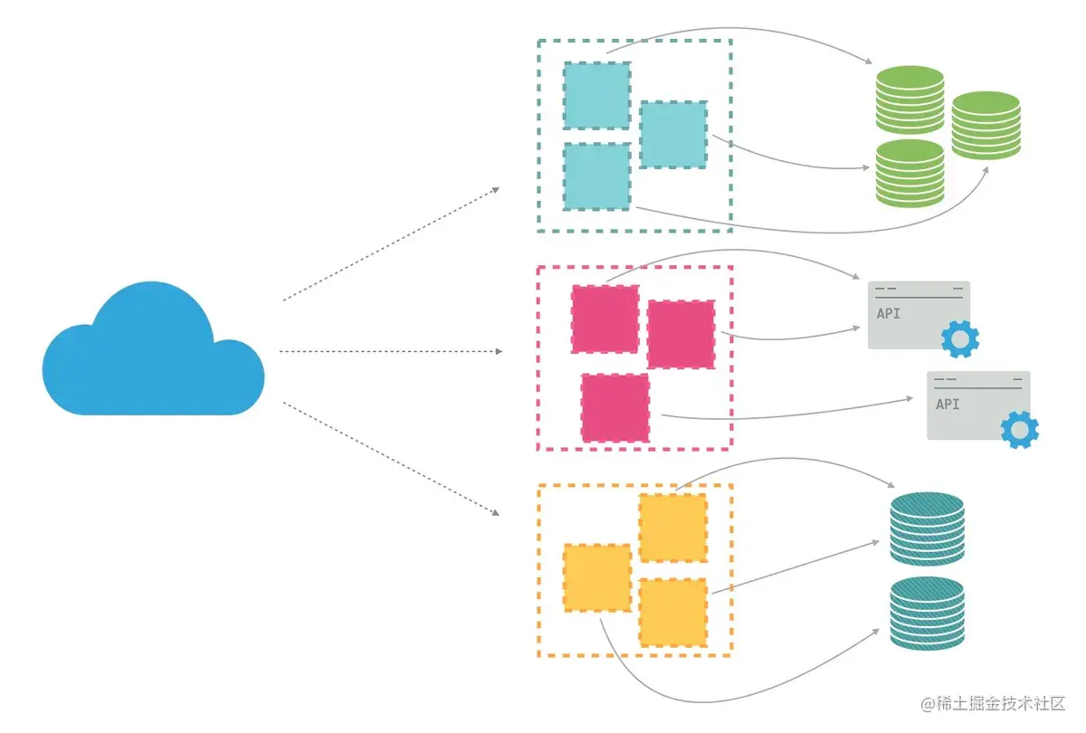 现在,想象一下你将应用程序拆分为多个服务,每个服务都有自己的外部依赖,比如数据库、第三方 API 等,这会导致架构变得更复杂。