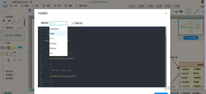 - 数据库ER图支持数据库建模,实时SQL预览,可打包下载