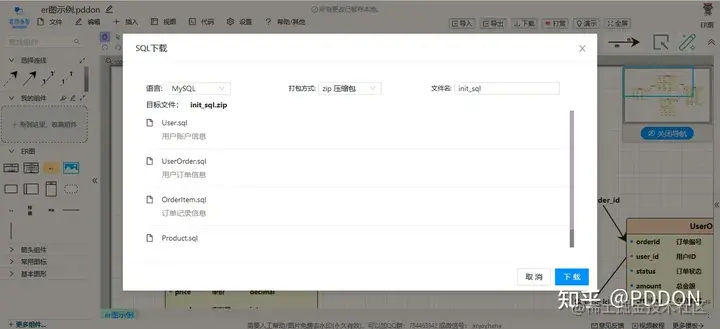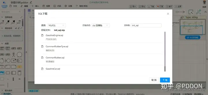 PDDON提供了实时生成和预览SQL,也可以打包下载SQL脚本。