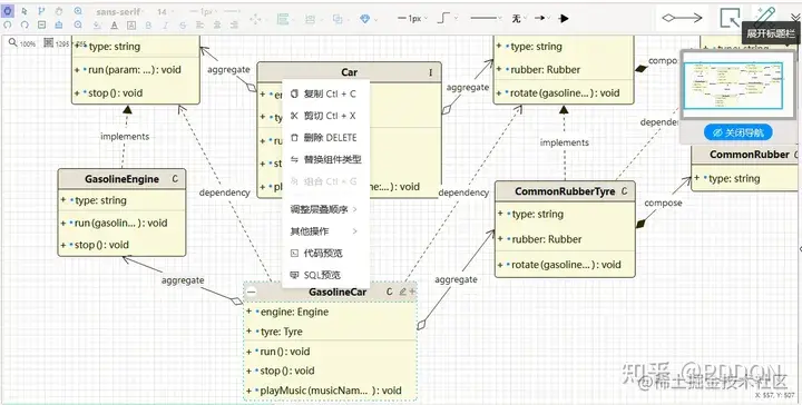 PDDON为不同类型的绘图指定了符合绘图风格类型的美化能力,自动计算并调整组件、连线位置、样式等。以辅助画图人员更便捷的画图 - 支持对象建模、数据库建模