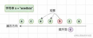 - 提升:为了构造字典序更大的「美丽字符串」,我们需要将字符串中的某个字母修改为字母序更大的字母,例如将 ‘a’ 提升到 ‘b’ 或 ‘z’;