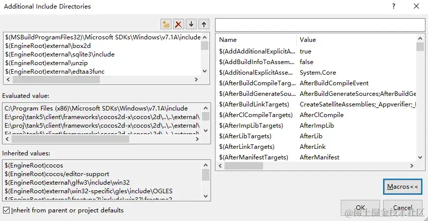在添加vc目录的时候,最后都会使用AdditionalIncludeDiretories,
