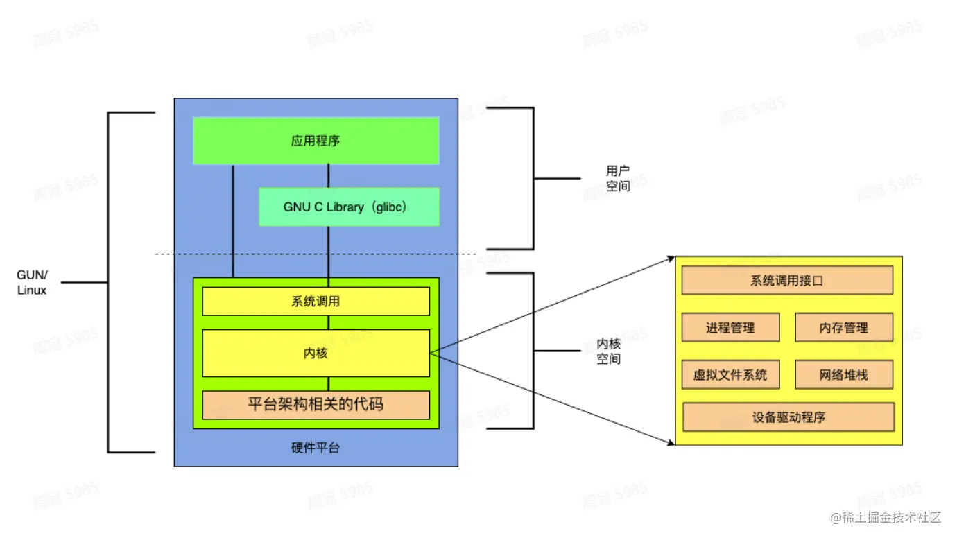 - 内核是硬件和软件之间的中间层