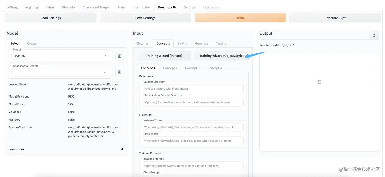 区别于之前介绍的Textual Inversion、Dreambooth方法。LoRA是一种训练技巧,可以和其他的方法结合,例如在Dreambooth中,训练的时候可以选择LoRA的方式。在之前Dreambooth的篇章中,介绍了人物的训练,这篇填上风格训练的坑。数据的处理方式和之前的处理一样,训练数据改用特定风格的图片,Concepts中选用Training Wizard (Object/Style)。