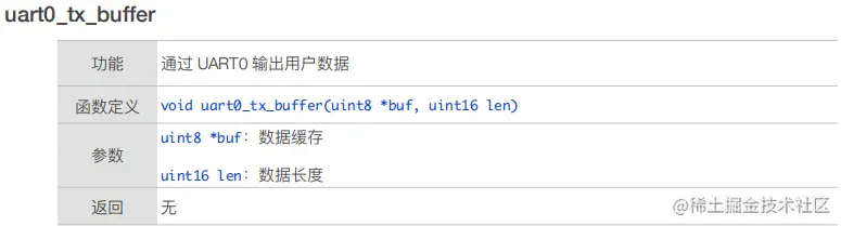uart0_tx_buffer(void *buf, uint16 len); // UART0 发送数据函数