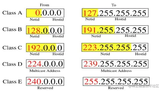 根据IP地址的范围和用途,IP地址被划分为五类: