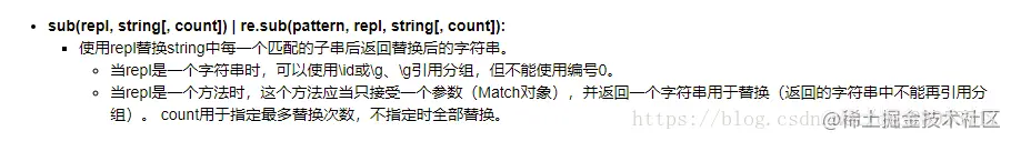 将匹配到的分组代入template中然后返回。template中可以使用\id或\g、\g引用分组,但不能使用编号0。\id与\g是等价的;但\10将被认为是第10个分组,如果你想表达\1之后是字符'0',只能使用\g<1>0。