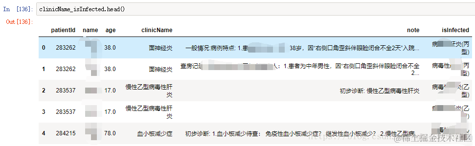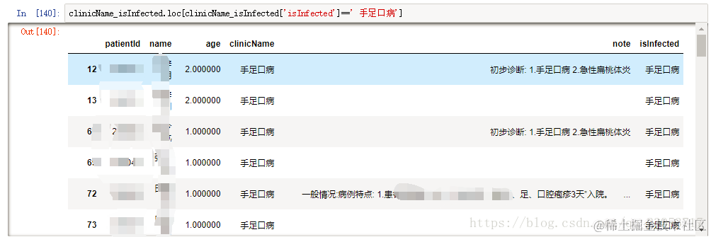 根据DataFrame某一列的值来选择具体的某一行 ITIRONMAN 2023-05-06 147 阅读1分钟 原始数据的DF: \ 此时,我要选择列名isInfected为“手足口病”的样本行: \ 总结:选择DataFrame里面某一列等于某个值的所有行,用一条命令即可解决即: df.loc[df['columnName']=='the value']