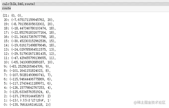def calc(sentence, DAG, route):