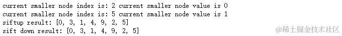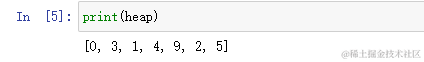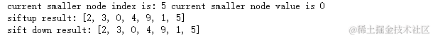 ### 1、第一次调整,首先输入heap=[2,3,1,4,9,0,5],执行_shiftup代码