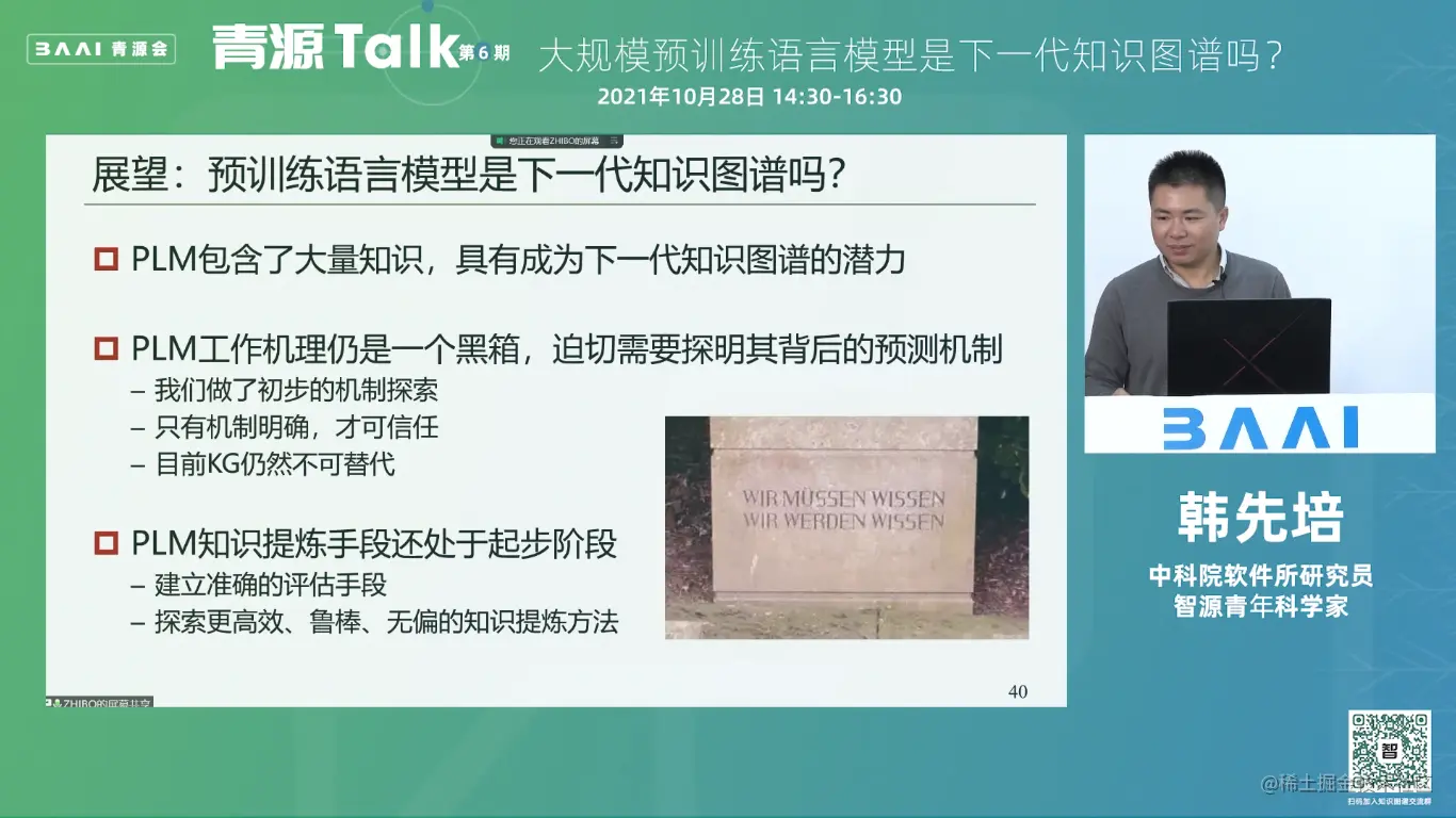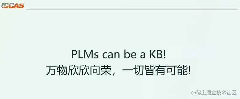 第一个就是预训练模型具有成为下一代知识图谱的潜力,预训练语言模型中确实是包含了非常多的知识,只是目前这些潜力还是没有发挥。