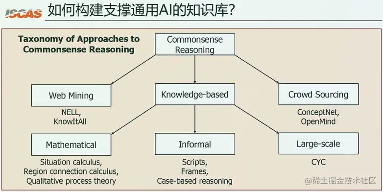 上面的目标,实际上已经有了多年的探索,这个过程就是构建通用AI的知识库,通常来说有三种手段。