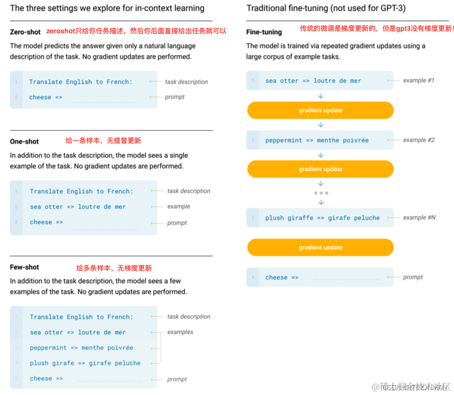 gpt3的梯度问题 ITIRONMAN 2023-05-06 58 阅读1分钟 如上,这个知识点,讲了几种shot的区别,但是比较重要的一点是传统的微调是要进行梯度更新的,但是gpt3没有梯度更新的过程