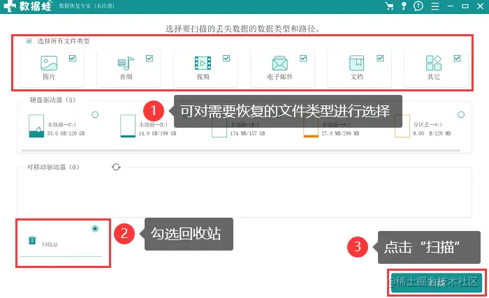这是一款拥有较好的数据扫描和恢复功能的恢复软件。恢复删除文件的成功率较大,能满足大部分用户的数据恢复需求。 使用数据蛙恢复专家恢复回收站文件的操作如下: