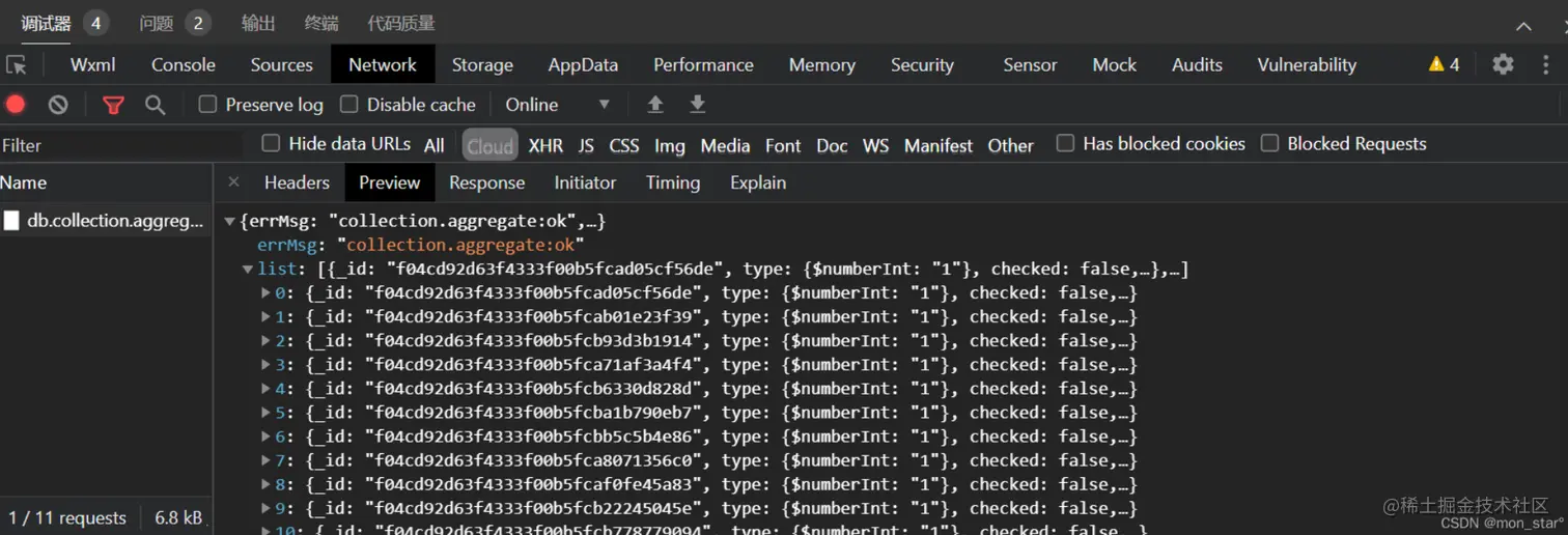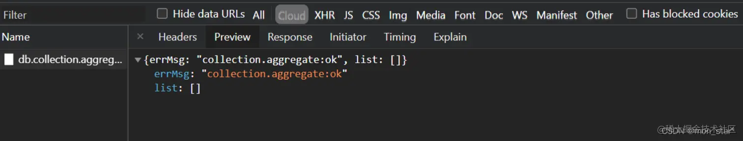 可以在【Network】-【Cloud】看到数据请求的返回值:
