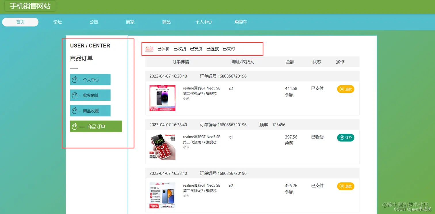 实现了收货地址管理、购物车管理、字典管理、论坛管理、公告管理、商家管理、商品管理、用户咨询管理、商品收藏管理、商品评价管理、商品订单管理、用户管理、管理员管理等功能。手机销售网站的开发根据操作人员需要设计的界面简洁美观,在功能模块布局上跟同类型网站保持一致,程序在实现基本要求功能时,也为数据信息面临的安全问题提供了一些实用的解决方案。可以说该程序在帮助管理者高效率地处理工作事务的同时,也实现了数据信息的整体化,规范化与自动化。。