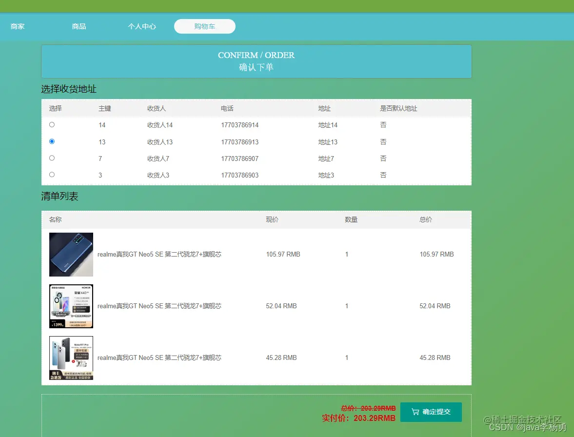 下单支付页面