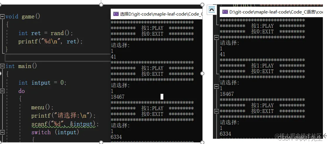 猜游戏的主体已经完成,但是真正的主体还没有开始,猜数字游戏并不是只有“玩游戏”这三个字那么简单,我们写一个函数来真正实现猜数字游戏的过程。