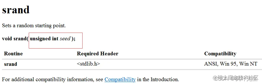 我们看一下 srand 函数,图中框起来必须要输入一个整型参数并且是随机的,这样才能满足我们的需求,这时候就要用到时间戳了。