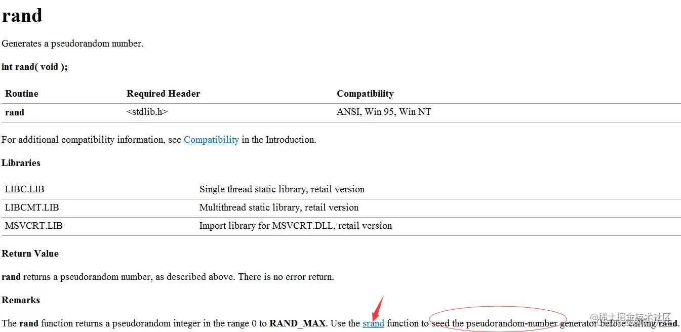 我们先来看下图圈起来的,在使用 rand 函数之前必须调用 srand 函数