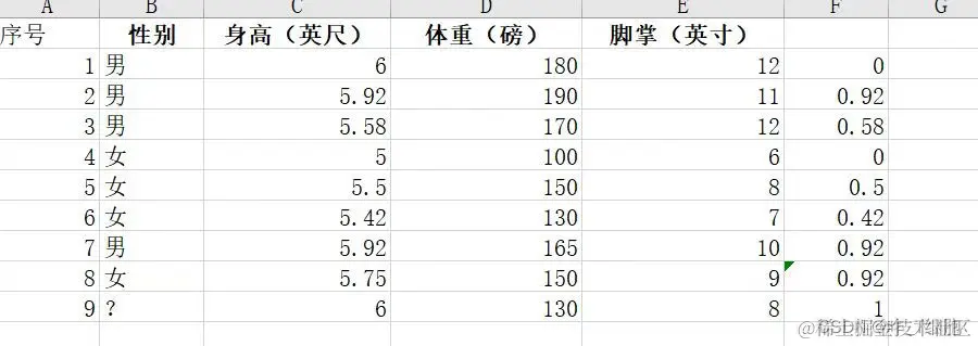 思路:根据1-8给出的身高,体重,脚掌长度作为输入,性别作为输出训练一个神经网络,并将第9条数据传入,判断ta的性别。