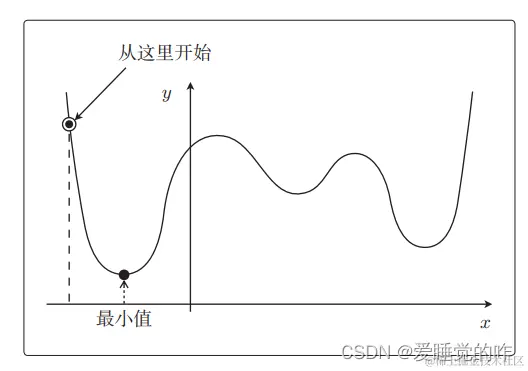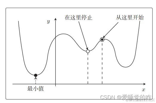 那么从这个点开始找,可以求出最小值。但是如果将下列这个点作为初始值,还没计算完就会停止,这就叫陷入了局部最优解。