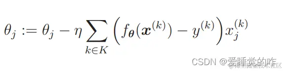 上述提到的是随机选择1个训练数据的做法,此外还有随机选择 m 个训练数据来更新参数的做法。设随机选择 m 个训练数据的索引的集合为 K,那么我们这样来更新参数: