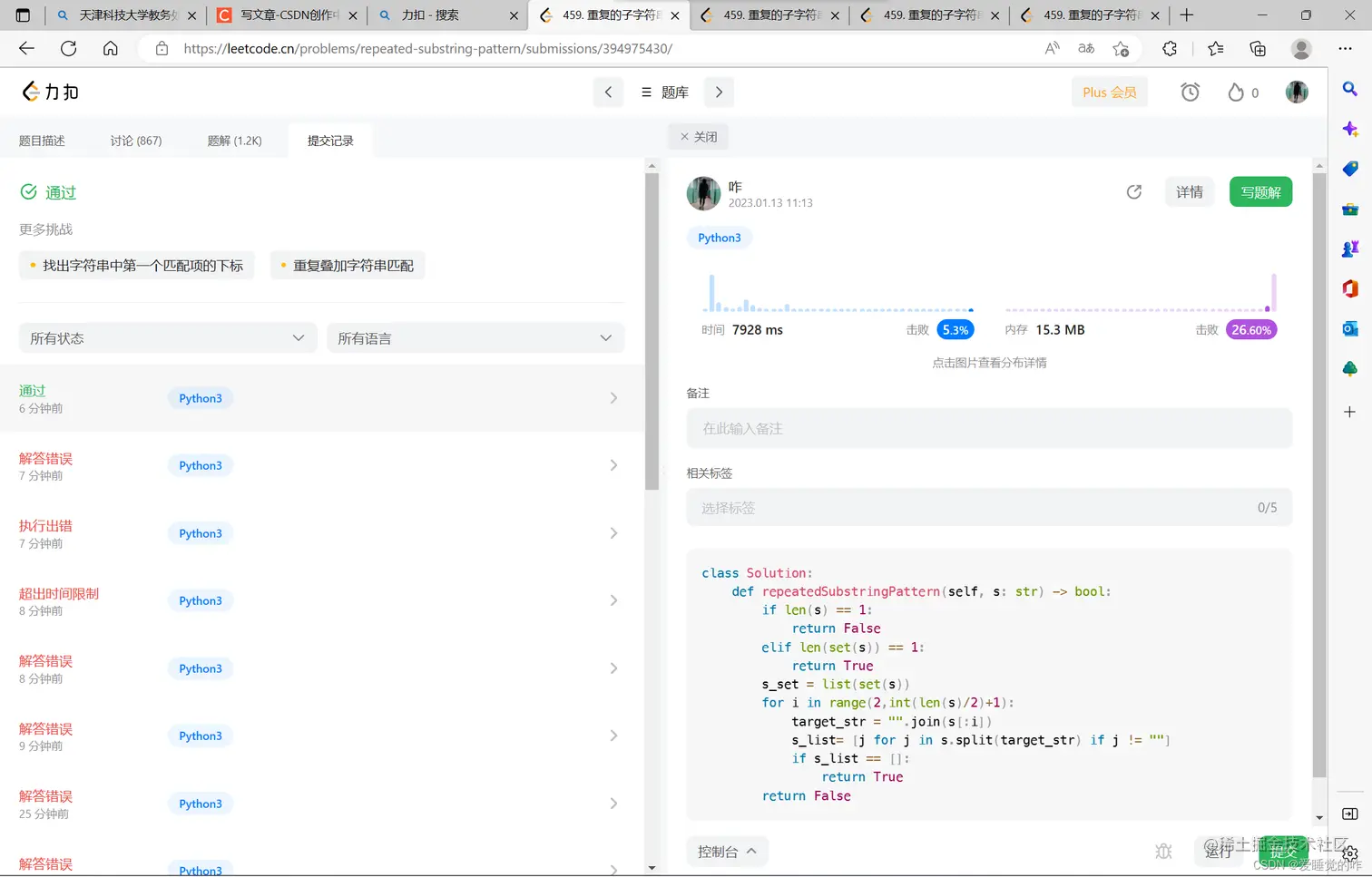 459.重复的字符串