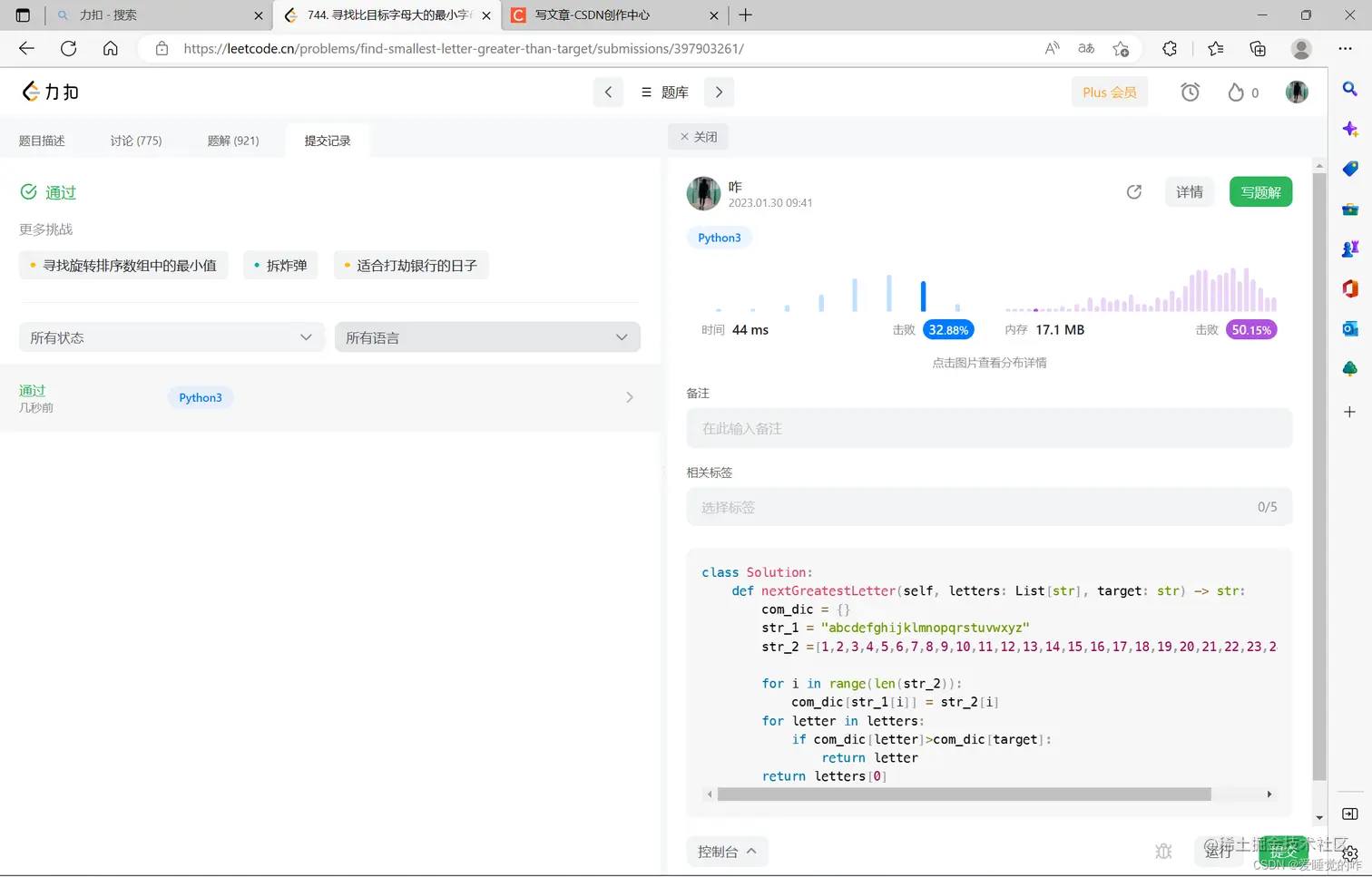 本专栏主要记录力扣的刷题记录,备战蓝桥杯,供复盘和优化算法使用,也希望给大家带来帮助,博主是算法小白,希望各位大佬不要见笑,今天要分享的是——《力扣刷题记录——748. 最短补全词、744. 寻找比目标字母大的最小字母、747. 至少是其他数字两倍的最大数》。