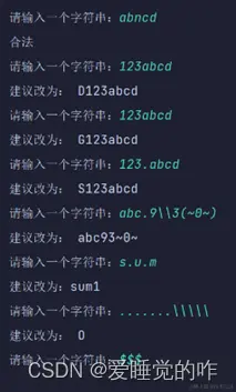 - 如果以上检测全部合格,那么最终输出“合法”,说明这是一个合法的字符串。