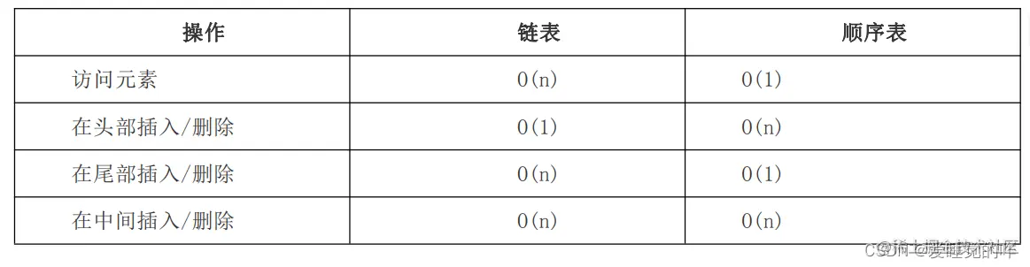 注意虽然表面上看起来时间复杂度都是O(n),但是链表和顺序表在插入和删除时进行的是完全不同的操作。链表的主要耗时操作是遍历查找,删除和插入的操作本身的复杂度是O(1)。