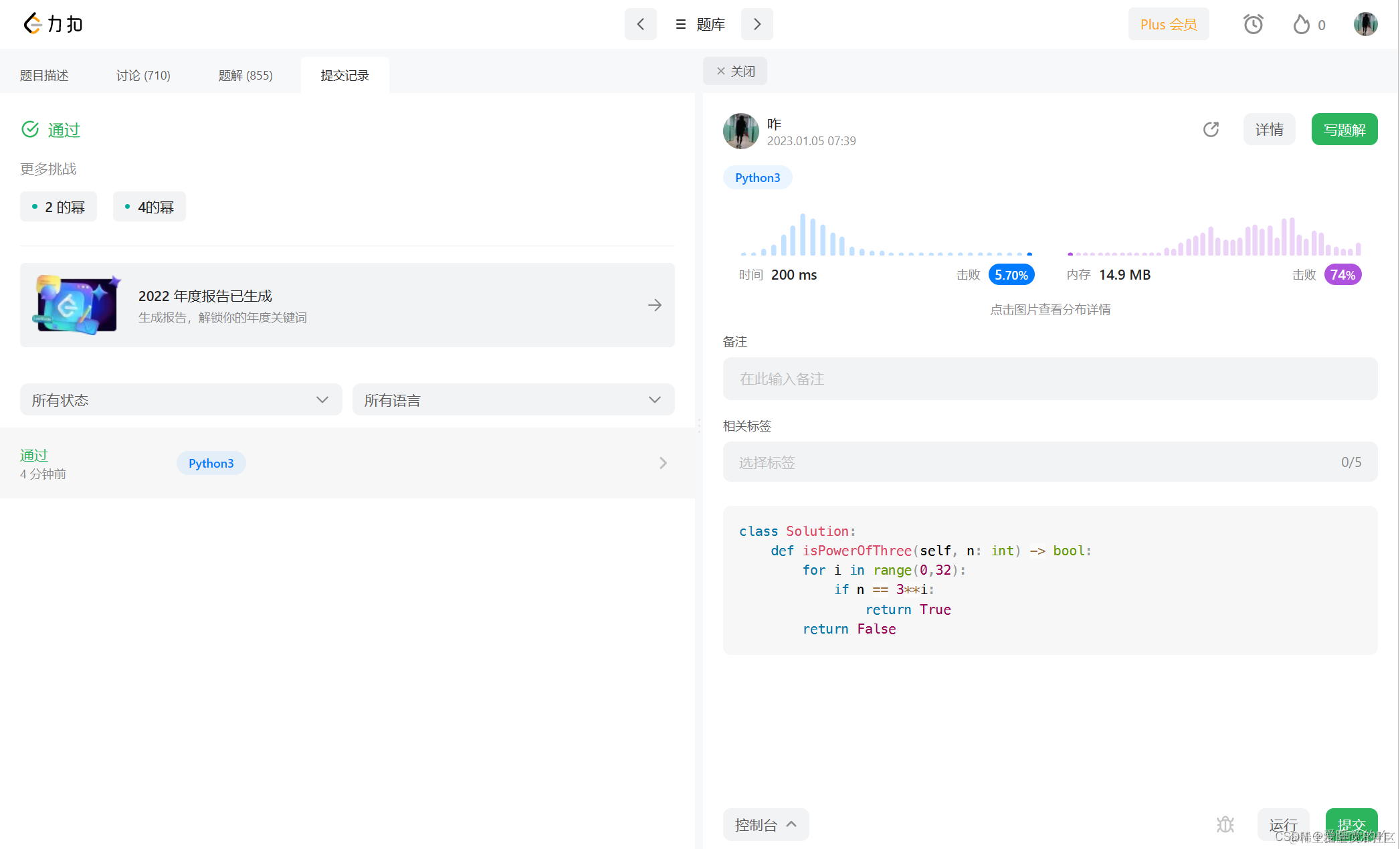 和上面2的幂次3的幂次的解题思路是一样的,在这里就不再赘述,不过这一次的时间击败了好大比例,hhh