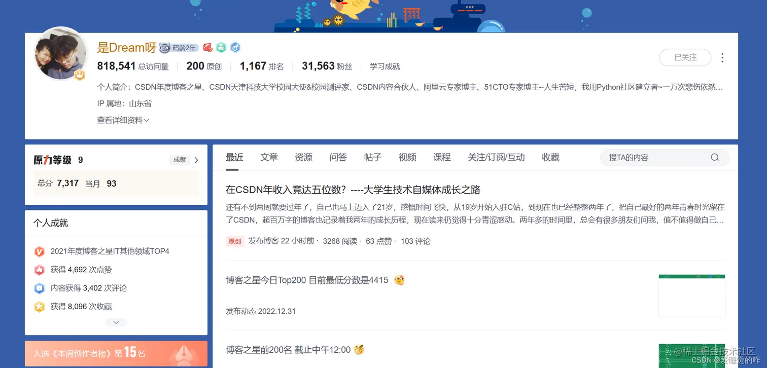 也是在那时候我开始萌生了在CSDN上更文的想法,在这里要感谢一位学长——是Dream呀。他是我的引路人,帮助我解决了很多问题,无论是技术上的还是学习上的,真的很感谢他给我带来的帮助。