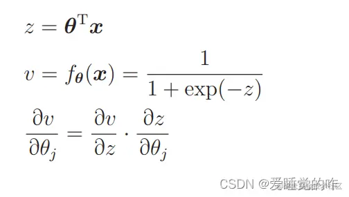 现在 fθ(x)本身就是 sigmoid 函数,所以这个微分表达式可以直接使用。 设 z = θTx,然后再一次使用复合函数的微分会比较好。