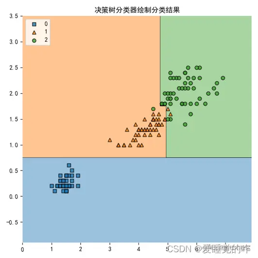 - 首先是数据预处理,读取文件,读取指定列,将PetalLengthCm与PetalWidthCm关联起来,存到一个嵌套列表中,用np.array转化为矩阵。通过类别添加标签0、1、2。用for循环遍历Species中的每一个值,用if语句进行判断,为其添加标签,便于训练决策树模型。