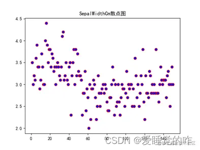 - 绘制散点图第一想法是用plt.scatter来绘制,以SepalWidth为例:x为1-len(SepalWidth)+1的序列,y即为SepalWidth每个值。