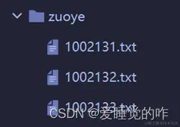 - 首先我们读取指定的文件夹,即“zuoye”文件夹,用target = os.walk("zuoye"),返回三个对象,最后一个即为所有文件的名称列表,所有我们只用对最后一个fs进行遍历就可以。将所有文件名添加到一个列表中,并另外用字符串切片的方式取出.txt。