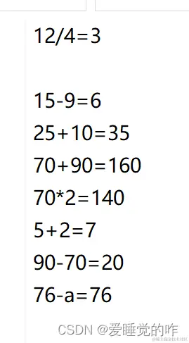 - 将切割的结果赋值给三个变量,并且注意要用i.replace(" ", "")去除空格,要不然后面没办法用int转化。这样我们就拿到了三个数,以及他们的运算符号,我们用if int(num_3) == eval(f"{num_1}{sign}{num_2}")判断这个表达式是否正确既可以啦,如果正确返回1,如果错误返回0,即做对得1分,做错得0分。