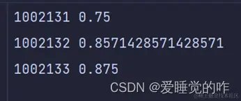 - 经过前两步,我们已经得到一个字典,这个字典的键是每一位同学的序号,值是该同学的正确率。只要分行将对应结果输出到指定文件中就完成啦!