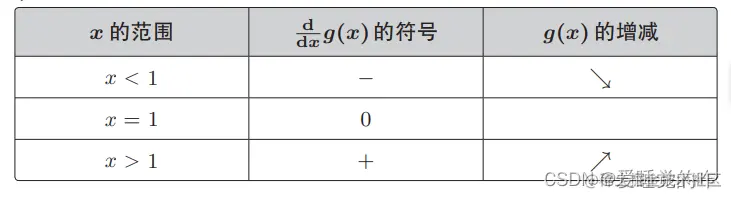 它的最小值是 g(x) = 0,出现在x = 1 时。这个二次函数的增减表为: