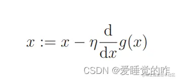 像A := B 这种写法,它的意思是通过 B 来定义 A。上面的意思就是将后面的值来定义前面的值,从而达到更新参数的目的,即用上一个 x 来定义新的 x。